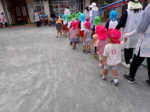 9月24日(水)入場行進練習 2025年9月24日 暑さも和らぎ涼しい日となりました。全員で入場行進の練習をしました。「0・1歳児」さんは、乳母車に乗っての入場です。初めての全員での入場行進練習でしたが、上手にできました。この後、年長さんは2歳児さんの親子ダンスのお手伝いもしました。 前の記事 一覧へもどる 次の記事