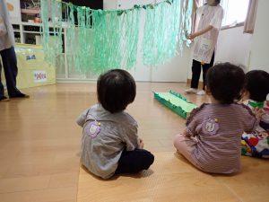 9月25日(木)1歳児【すみれ(白)さん】 2025年9月25日 1歳児の「すみれ・白」さんは、テラスで遊んだ後、お部屋で運動会の「トトロの大冒険」の練習をしていました。「保護者専用ページ」に子どもたちの様子をアップしました。 前の記事 一覧へもどる 次の記事
