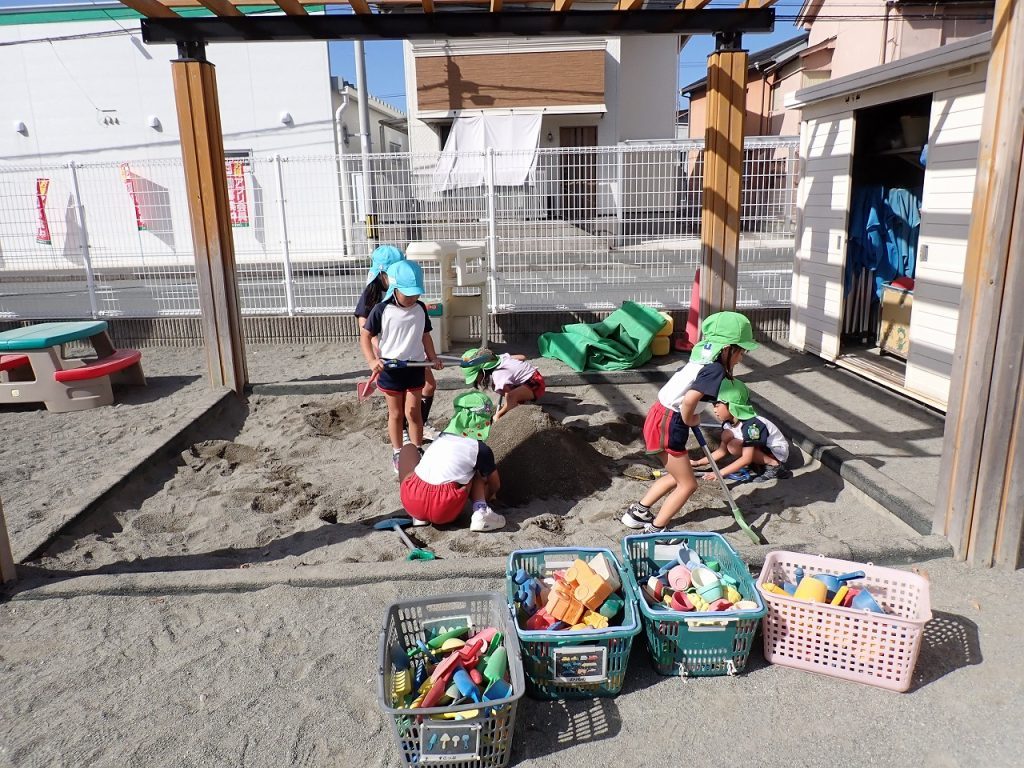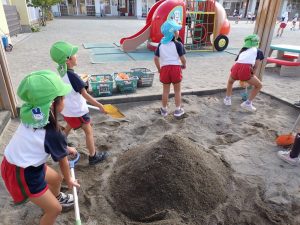 9月30日(火)園庭遊び【年長】 2025年9月30日 午後、園庭で年長さんが遊んでいました。サッカーをしたり砂場で遊んだり虫とりをしたりと自分のしたい遊びをして楽しんでいました。広い園庭でのびのびと遊んでいる子どもたちの姿は素敵でした。「保護者専用ページ」に子どもたちの様子をアップしました。 前の記事 一覧へもどる 次の記事