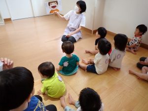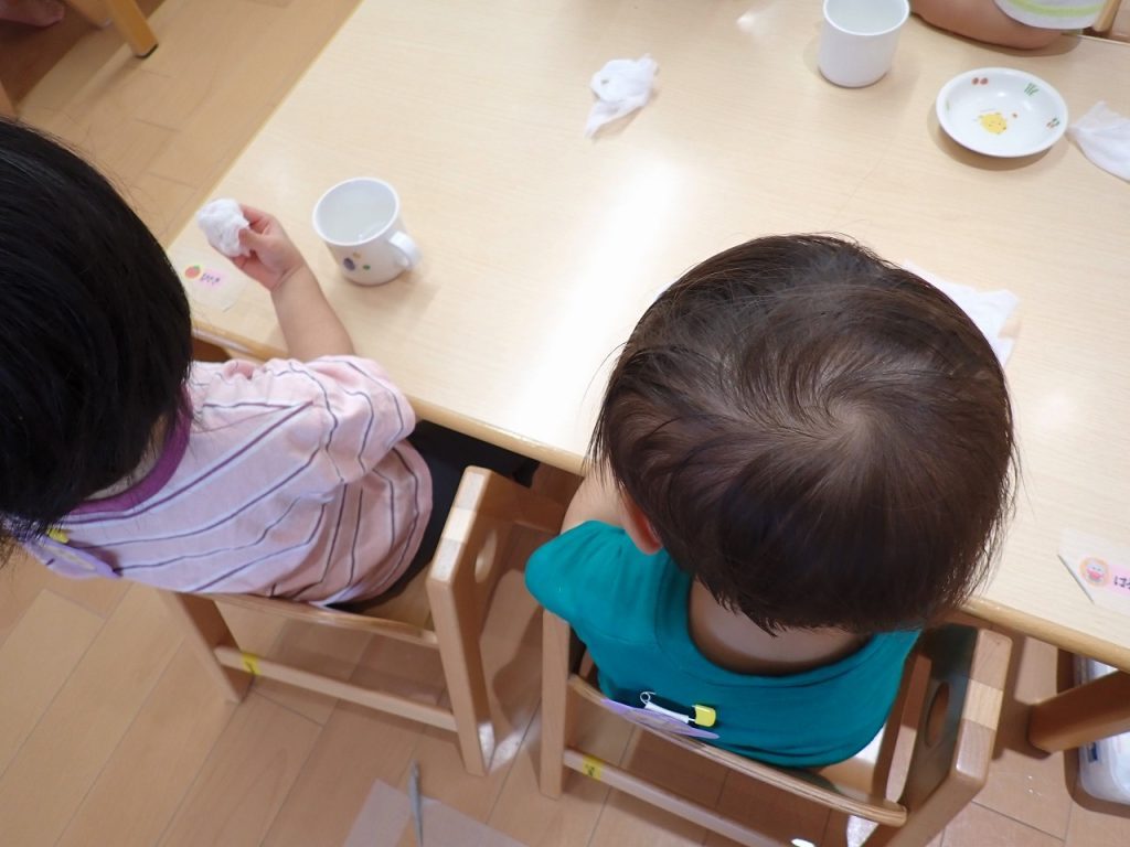 10月2日(木)1歳児:すみれ【白】 2025年10月2日 1歳児のすみれ(白)さんは、お昼寝の後、おやつを食べていました。その後は、先生に本を読んでもらっていました。みんな上手に聞いていました。「保護者専用ページ」に子どもたちの様子をアップしました。 前の記事 一覧へもどる