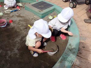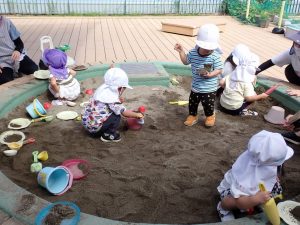 10月7日(火)テラス遊び【つぼみ・すみれ】 2025年10月7日 0・1歳児さんが午前のおやつの後、2階のテラスで遊んでいました。2階のテラスの砂場で遊んでいる人がたくさんいました。お友だちとの関わりも少しずつできてきました。お友だちと仲良く遊んでいる姿も見られ、子どもたちの成長を感じることができました。「保護者専用ページ」に子どもたちの様子をアップしました。 前の記事 一覧へもどる 次の記事