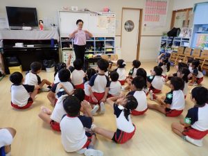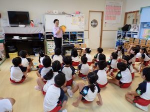 10月9日(木)英語教室 2025年10月9日 年長、年中の英語教室がありました。曲に合わせたり体を動かしたりしながら楽しく学んでいました。「保護者専用ページ」に年長さんの英語教室の様子をアップしました。 前の記事 一覧へもどる