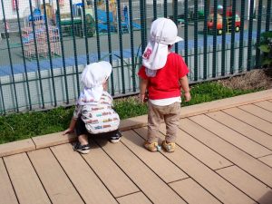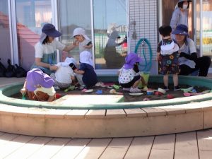10月17日(金)テラス遊び【つぼみ・すみれ】 2025年10月17日 0歳1歳児さんが、2階の広いテラスで遊んでいました。子どもたちは、外遊びが大好きです。テラスの砂場でもよく遊んでいます。「保護者専用ページ」に子どもたちの様子をアップしました。 前の記事 一覧へもどる