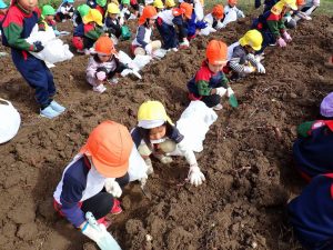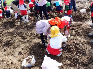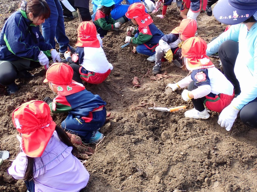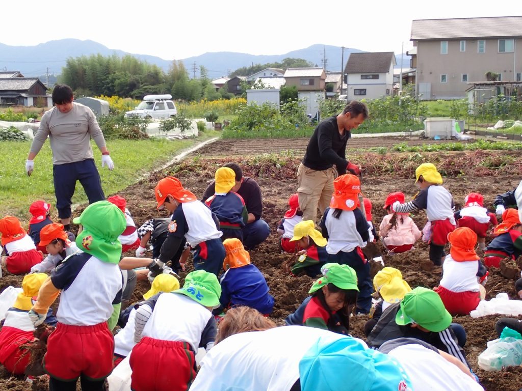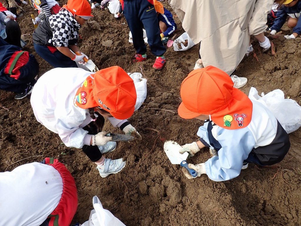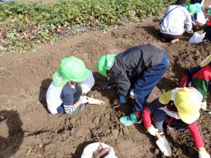 10月23日(木)いもほり 2025年10月23日 年少・年中・年長さんが、神久の竹内のおばあちゃんの畑で芋ほりをしました。年長さんが春に植えた苗が育ち、たくさん芋ができていました。芋が見つかると子どもたちは大喜びでほっていました。畑への行き帰りには、年長さんと年少さんが手をつなぎました。ほった芋はお家へ持ち帰りました。0・1・2歳さんにもほった芋を持ち帰ってもらいました。ご協力していただいた保護者の方々、ありがとうございました。「保護者専用ページ」に子どもたちの様子をアップしました。 前の記事 一覧へもどる 次の記事