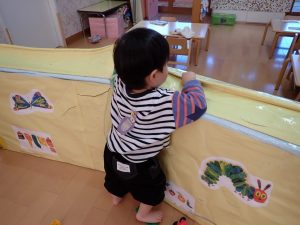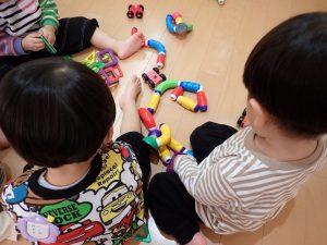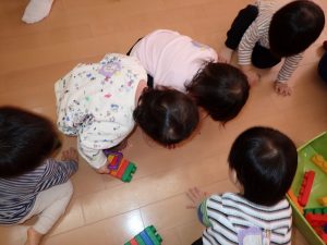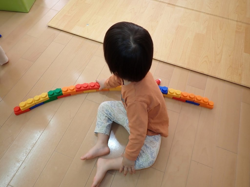10月27日(月)すみれ白さん(1歳児) 2025年10月27日 1歳児のすみれ白さんは、テラスで外遊びをした後、お部屋で遊んでいました。ブロックをつなげたり組み合わせたりして遊んでいました。「保護者専用ページ」に子どもたちの様子をアップしました。 前の記事 一覧へもどる 次の記事