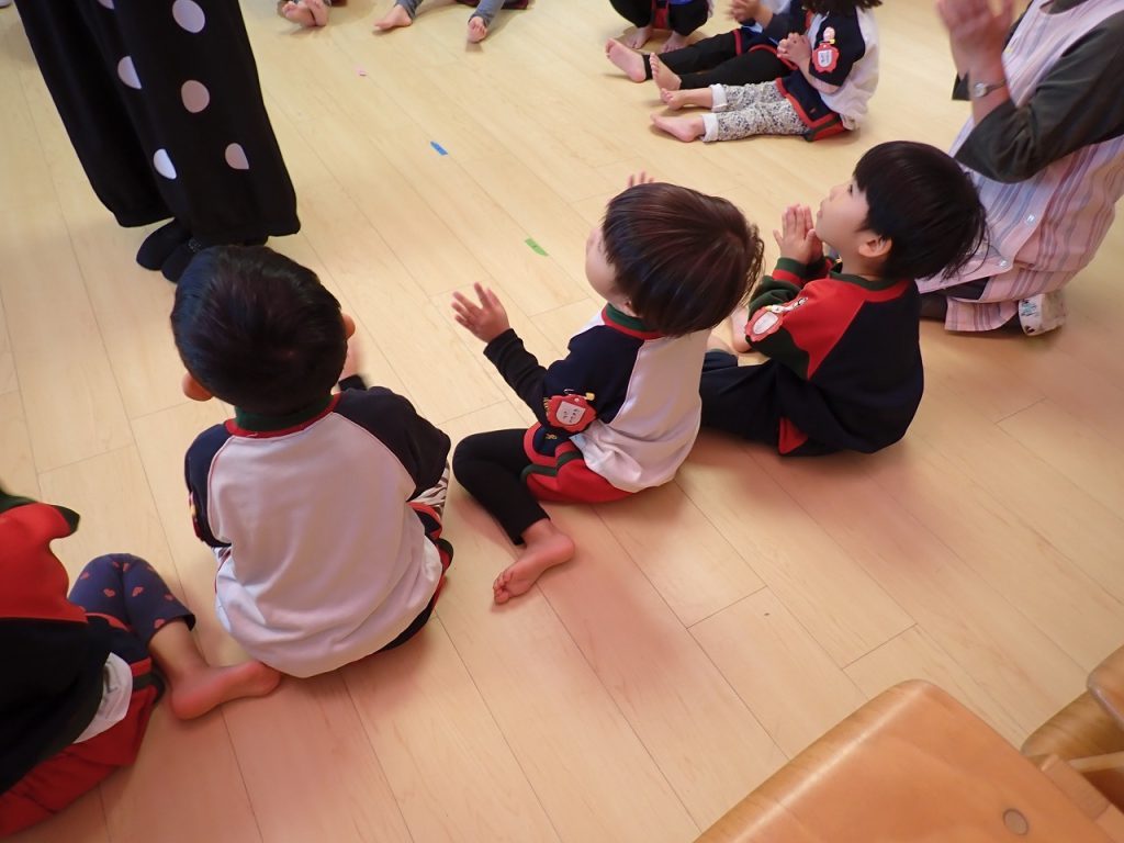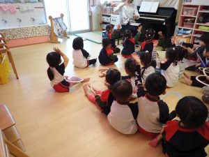 10月29日(水)リトミック【年少】 2025年10月29日 外部講師大野先生によるリトミックが年少さんでありました。先生のピアノに合わせて子どもたちは、楽しそうに活動していました。先生が用意してくれたフープを使って柿の実取りや栗拾いなど季節に合った動きを楽しんでいました。「保護者専用ページ」に子どもたちの様子をアップしました。 前の記事 一覧へもどる