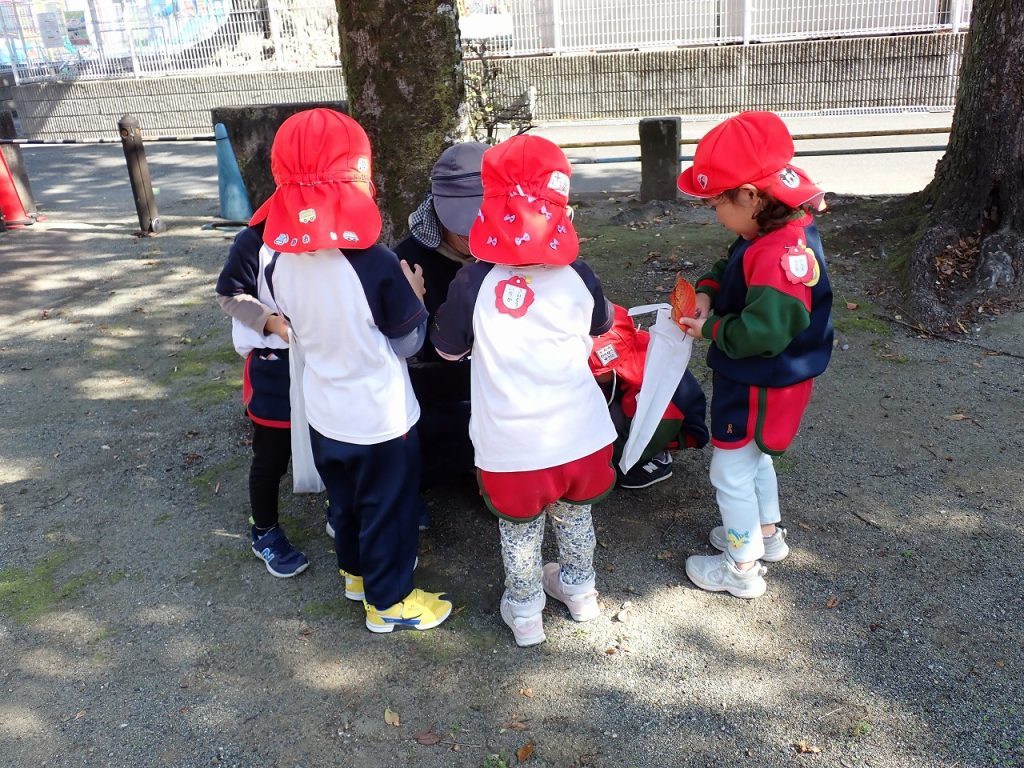 11月7日(金)木の実・落ち葉ひろい【年少組】 2025年11月7日 年少さんが、園の隣の有緝公園へ木の実、落ち葉ひろいに行きました。たくさんのどんぐりの実が落ちていてみんなは大喜びでした。落ち葉を集めてとばして喜んでいる人もいました。みんな生き生きと活動していました。「保護者専用ページ」に子どもたちの様子をアップしました。 前の記事 一覧へもどる
