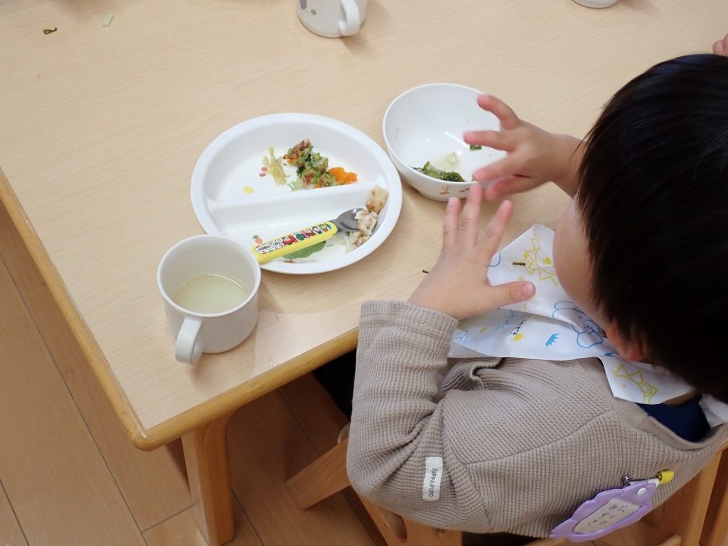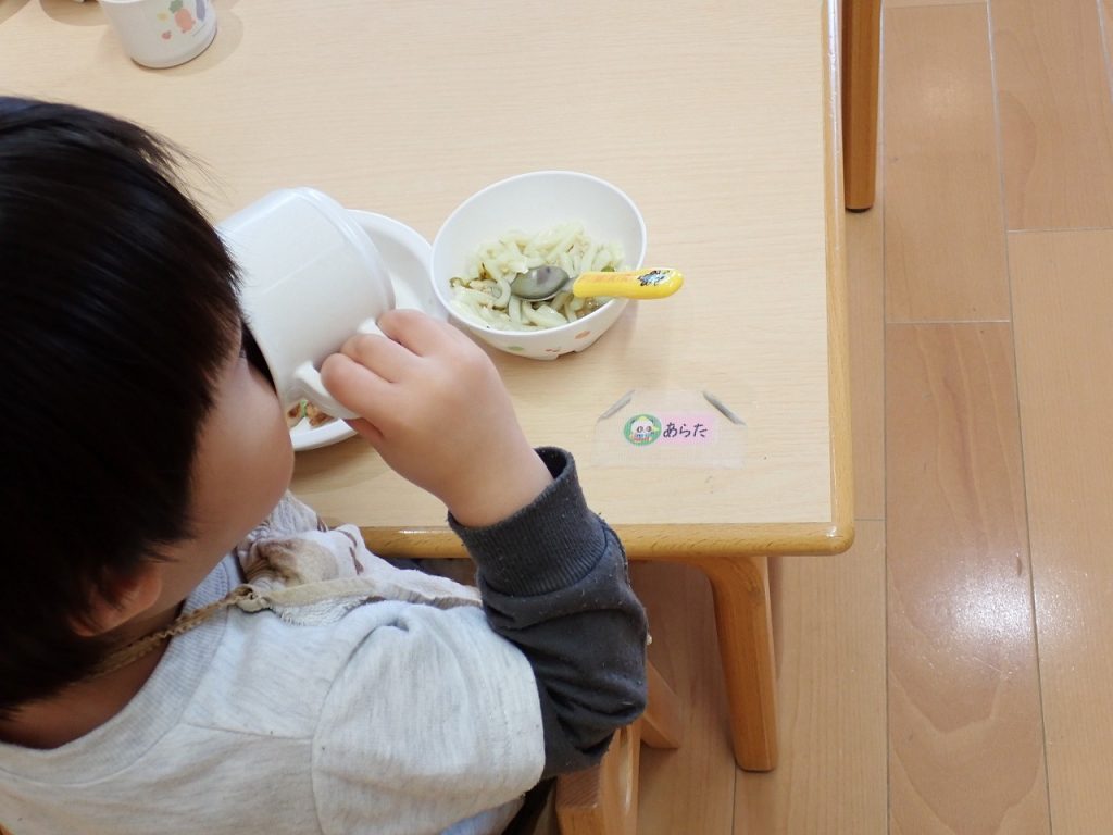11月12日(水)1歳児【すみれ・白】さんの給食など 2025年11月12日 1歳児の部屋遊びと給食の様子です。未満児さんの給食は「スタミナねばねばうどん・ちくわの天ぷら・いろいろ野菜のおかか和え」でした。おうどんがおいしくておかわりをする人もたくさんいました。「保護者専用ページ」に子どもたちの様子をアップしました。 前の記事 一覧へもどる