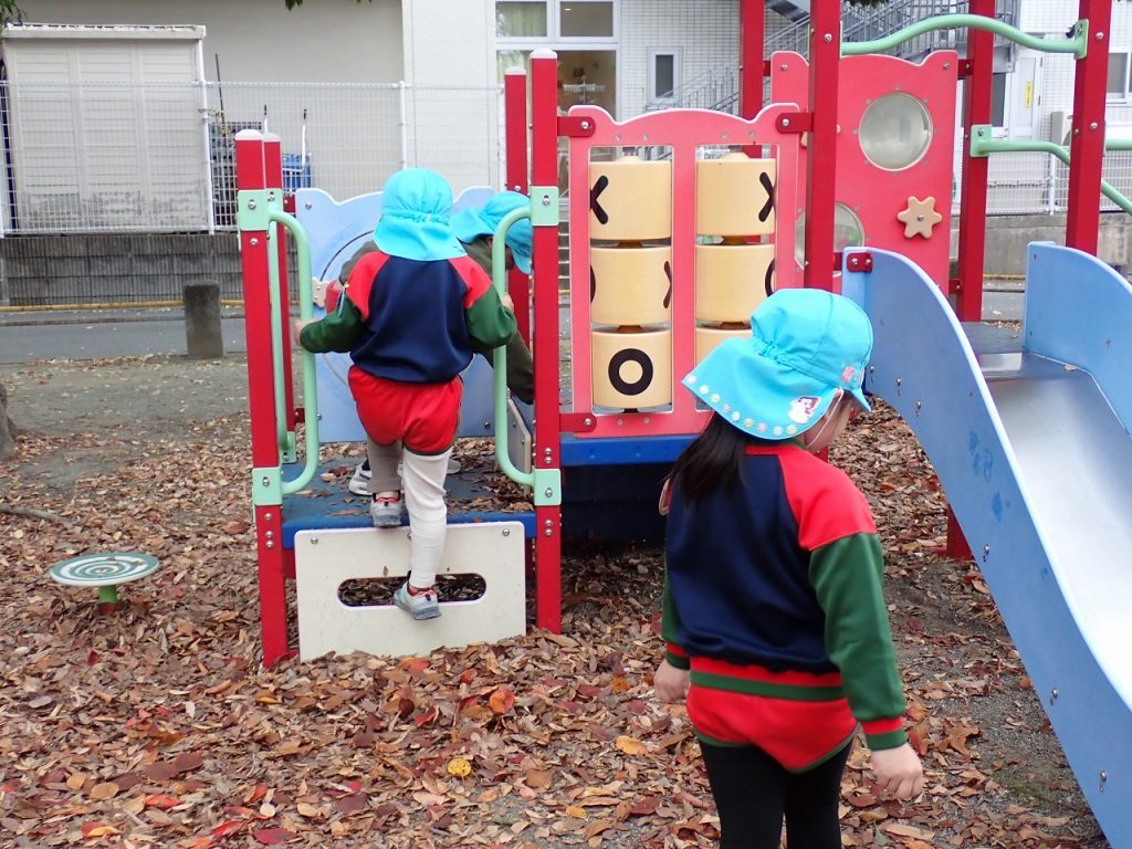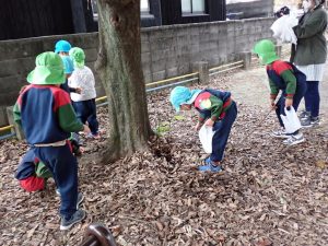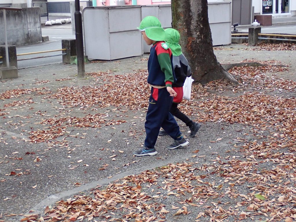 11月18日(火)有緝公園へ(年長さん) 2025年11月18日 園庭体育の後、年長さんは、有緝公園へ出かけました。どんぐりを拾ったり落ち葉で遊んだりしていました。落ち葉のじゅうたんに寝転がっている人もいました。虫探しをして楽しんでいる人もいました。自然の中で楽しむことができました。 前の記事 一覧へもどる