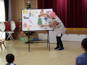 12月3日(水)りす組「クリスマス会」 2025年12月3日 未就園のお子様対象のりす組の「クリスマス会」が行われました。制作や手遊び歌、ペープサート、楽器演奏などの楽しい内容でした。参加したお子様は、楽しんでお話を聞いてくれていました。また、ピアノとサックスの演奏にも興味津々でした。最後に、サンタさんからプレゼントがありました。園庭開放やりす組の機会にお気軽にこども園へ遊びに来てください。 前の記事 一覧へもどる 次の記事