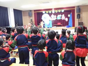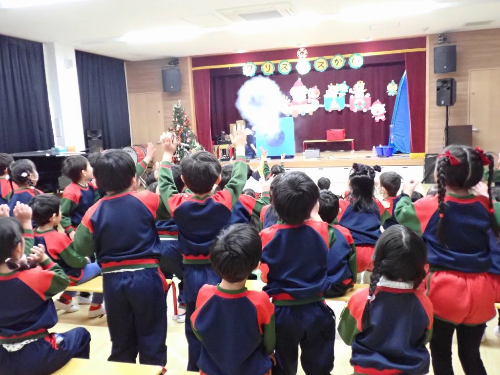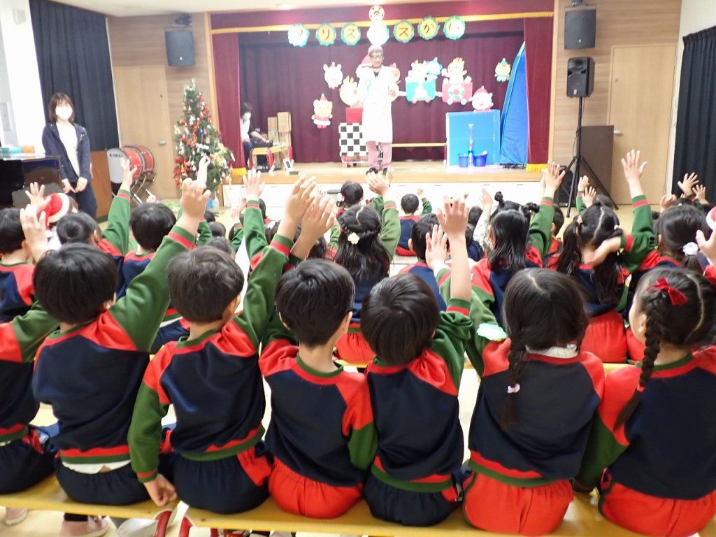 12月19日(金)クリスマス会 2025年12月19日 こばと会主催のクリスマス会が行われました。「エコで楽しいサイエンスショー 実験!」(はてな先生)を見せてもらいました。0・1・2・3歳と年中・年長の二部制でしていただきました。子どもたちは、集中して見ることができました。「保護者専用ページ」に子どもたちの様子をアップしました。 前の記事 一覧へもどる