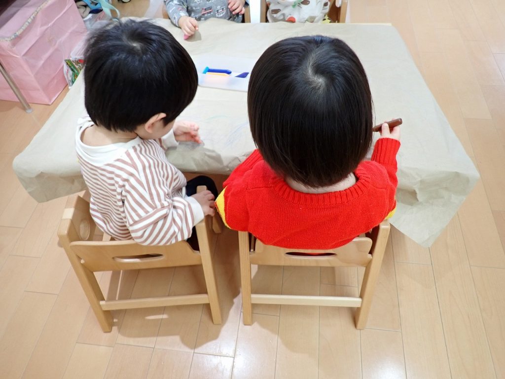12月25日(木)1歳児≪すみれ・白組≫の活動 2025年12月25日 机の上に大きな紙を敷いてもらい、そこにクレパスで思い思いに描いていました。グルグルと大きな丸をたくさん描いているお友だちがたくさんいました。「これ黄色」などと、色の名前を言いながら描いているお友だちもいました。その後は、シール貼りをして楽しんでいました。「保護者専用ページ」に子どもたちの様子をアップしました。 前の記事 一覧へもどる 次の記事