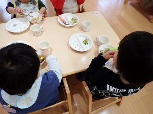 12月26日(金)今年最後の給食 2025年12月26日 今年最後の給食は、「年越しラーメン・揚げぎょうざ・三食ナムル」でした。0歳児さんは、ラーメンがうどんになりました。年少・年中・年長さんには、デザートとしてパイン缶がつきました。子どもたちは、ラーメンとぎょうざをよく食べていました。「保護者専用ページ」につぼみ・すみれ・うめ・あんずさんの給食の様子をアップしました。 前の記事 一覧へもどる
