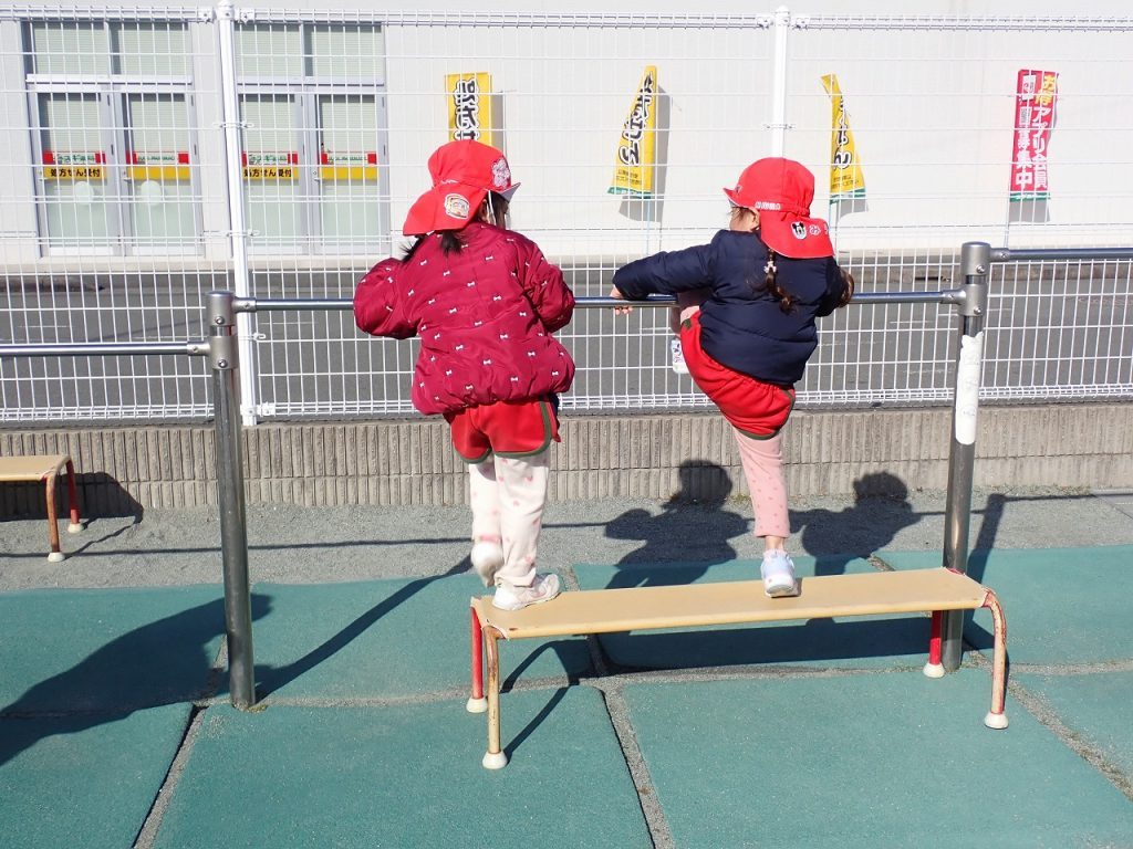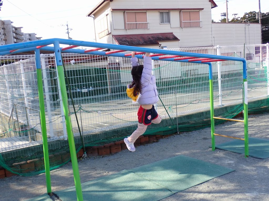 1月14日(水)外遊び≪年少組・年中組≫ 2026年1月14日 午後、園庭で年少さん年中さんが遊んでいました。寒い日でしたが、子どもたちは元気に遊んでいました。広い園庭をおにごっこして走り回っている人や手渡り、鉄棒、ブランコなどの遊具で楽しんでいる人もいました。「保護者専用ページ」に子どもたちの遊んでいる様子をアップしました。 前の記事 一覧へもどる