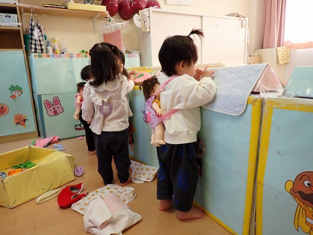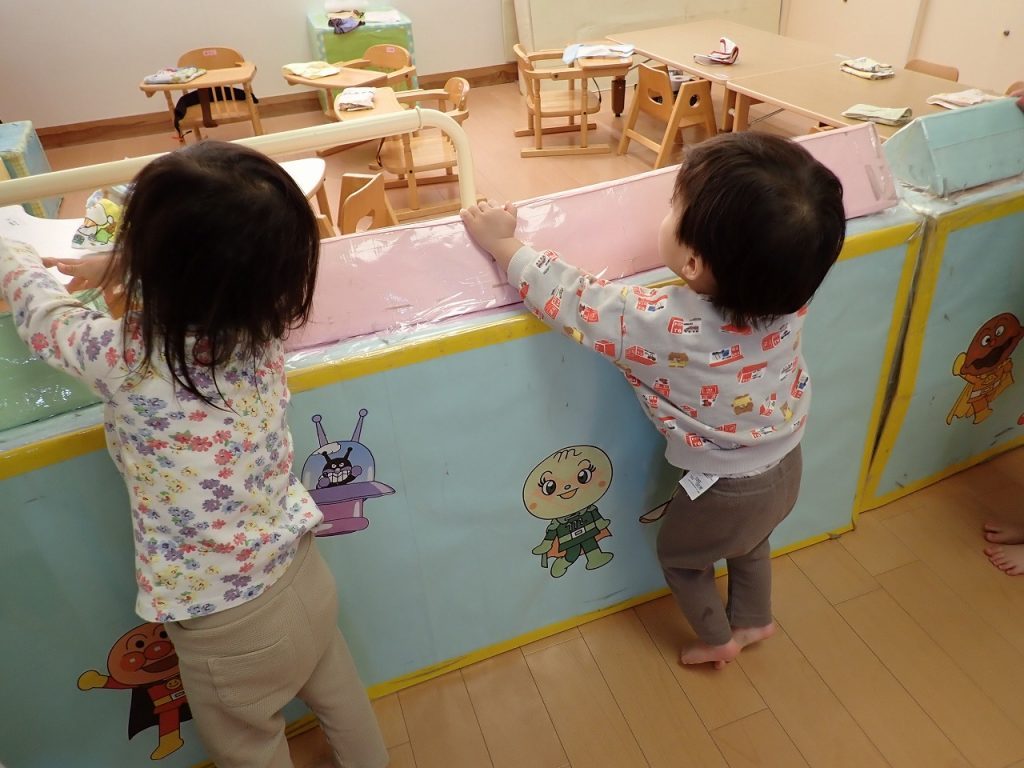 1月19日(月)お部屋遊び≪つぼみ・すみれ紫組≫ 2026年1月19日 0歳児さんと1歳児さんが、外遊びの後、お部屋で楽しそうに遊んでいました。少しずつ友だちとの関わりもできてきました。集団で生活する中での子どもたちの成長を感じうれしく思いました。「保護者専用ページ」に「つぼみ・すみれ紫」の子どもたちの様子をアップしました。 前の記事 一覧へもどる 次の記事