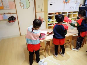 1月20日(火)カーニバルに向けて≪しろぎく≫ 2026年1月20日 カーニバルに向けて段々と仕上がってきました。年長さんが見ているなかで、少し緊張気味の年中のしろぎくさんです。衣装の片付けも上手になってきました。「保護者専用ページ」にしろぎくさんの様子をアップしました。 前の記事 一覧へもどる 次の記事