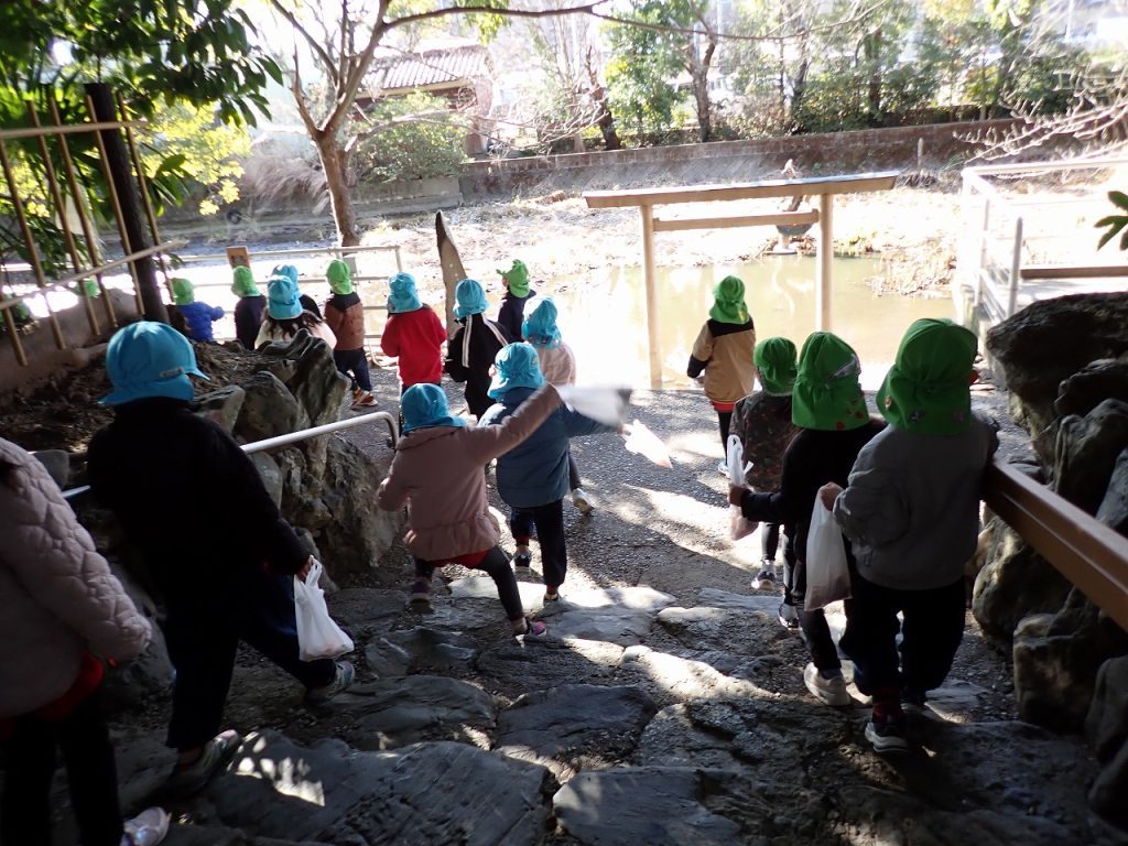 2月3日(火)船江上社の節分祭に参加《年長》 2026年2月3日 年長さんが、船江上社の節分祭に参加しました。始めにお祓いをしていただきました。その後、鬼に向かって豆をまきました。地域の行事に参加させてもらい子どもたちにとっていい経験になりました。「保護者専用ページ」に子どもたちの様子をアップしました。 前の記事 一覧へもどる