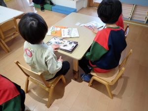 2月5日(木)うめ・あんず【年長さんが遊びにきてくれたよ】 2026年2月5日 2歳児さんのお部屋に年長のしろばら組さんが遊びにきてくれました。本を読んでもらったりパズルをいっしょにしたりしていました。みんなとても楽しそうでした。「保護者専用ページ」に(うめ・あんず)さんの様子をアップしました。 前の記事 一覧へもどる