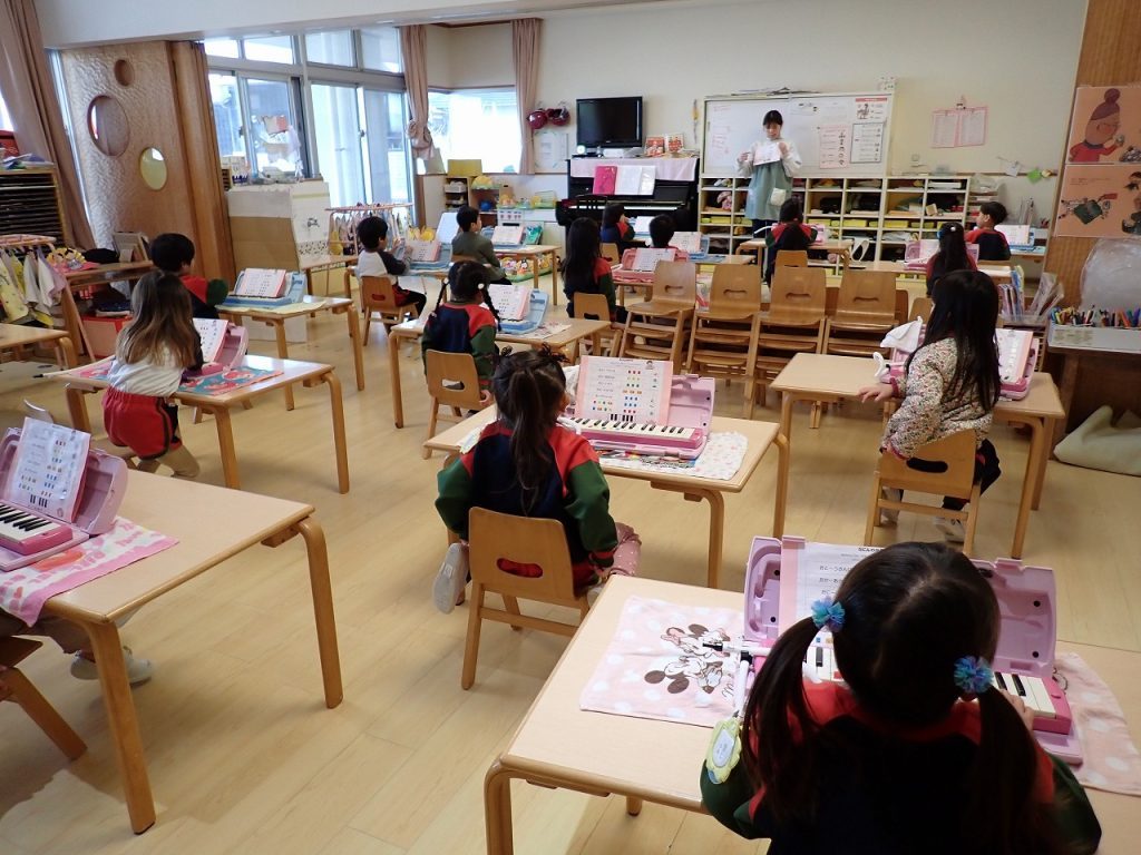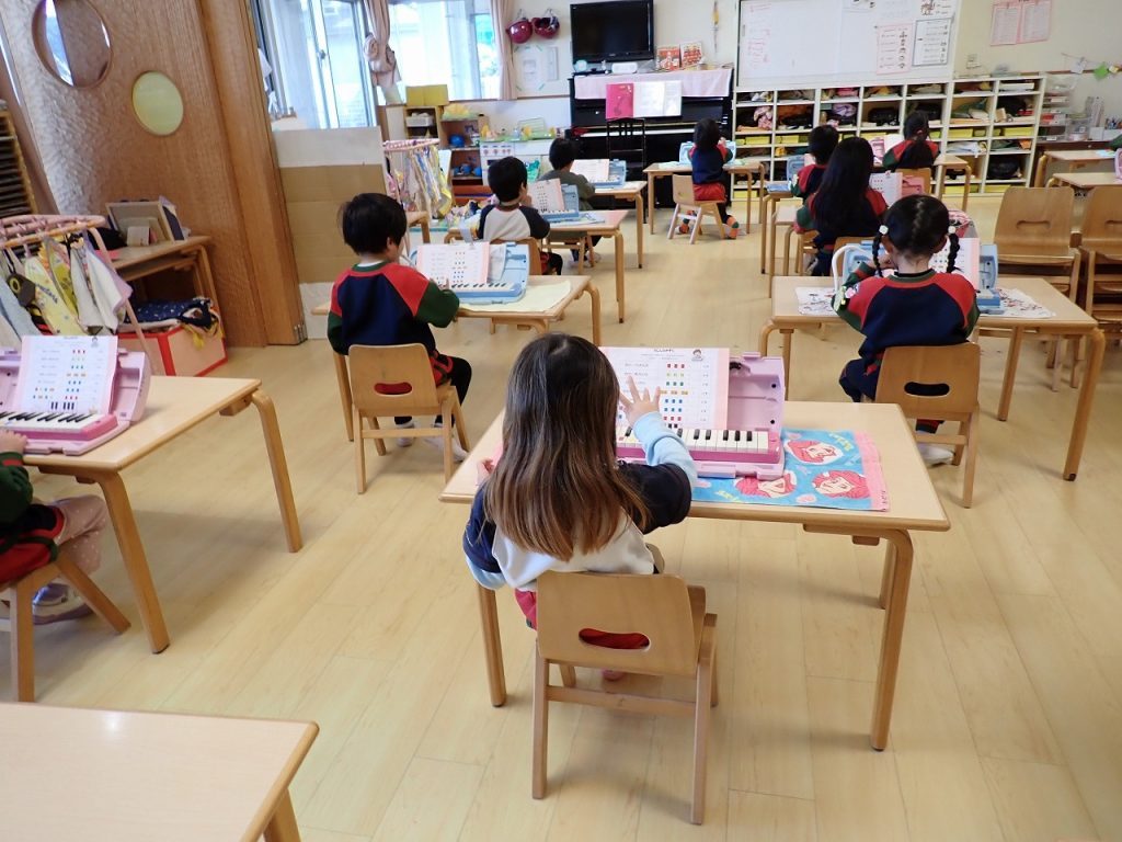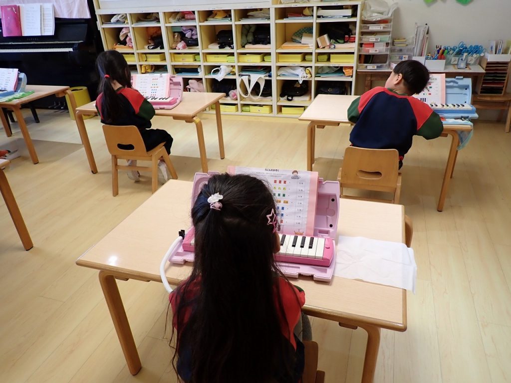2月12日(木)鍵盤ハーモニカ練習≪年中:きぎく組≫ 2026年2月12日 年中のきぎく組さんが鍵盤ハーモニカの練習をしていました。先生のお話をよく聞いて練習できていました。先生がみんなのところを回って、丁寧に指導をしていました。「ド」から「ソ」まで上手にできていました。使った後の片付けもきちんとできていました。 前の記事 一覧へもどる
