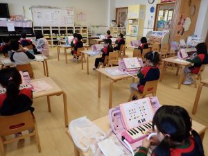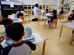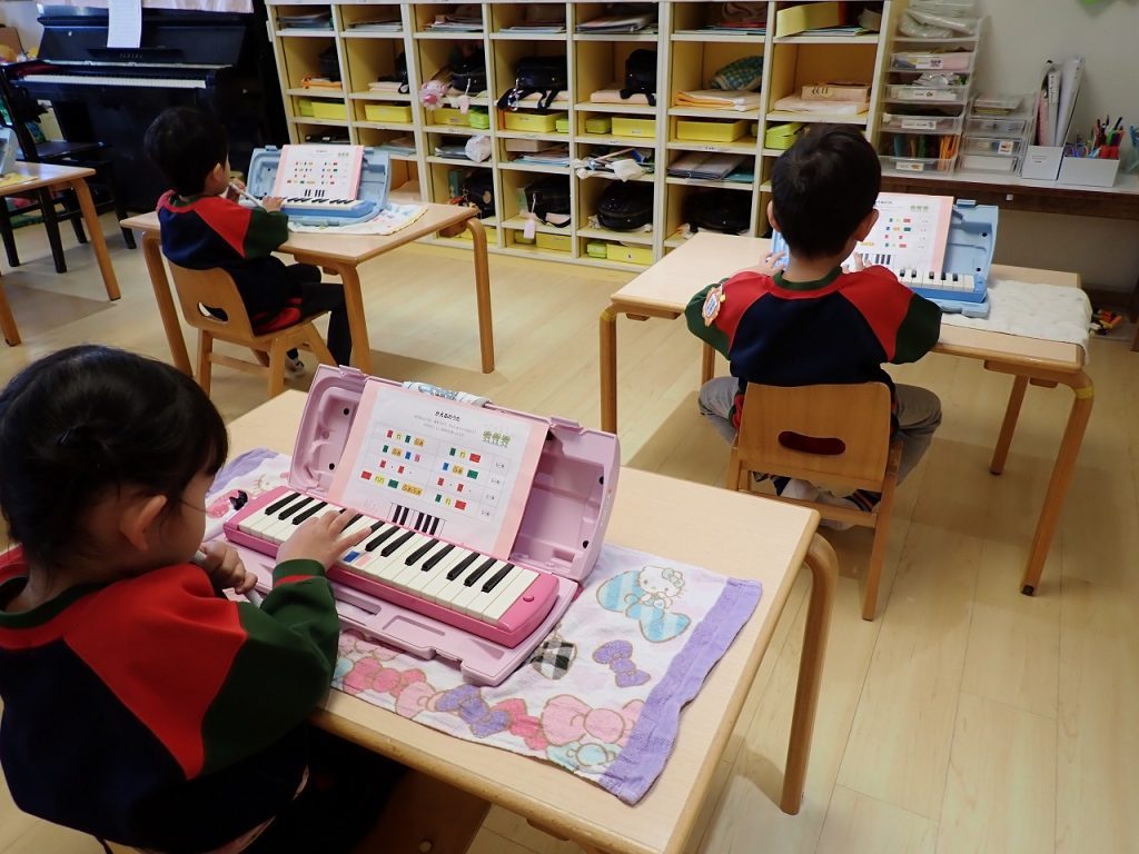 2月18日(水)鍵盤ハーモニカ練習≪年中:白ぎく≫ 2026年2月18日 年中の白ぎくさんが、鍵盤ハーモニカの練習をしていました。丁寧に先生に教えてもらっていました。うまく弾けるようになってきたことが、とてもうれしそうでした。「保護者専用ページ」に白ぎくさんの様子をアップしました。 前の記事 一覧へもどる