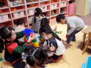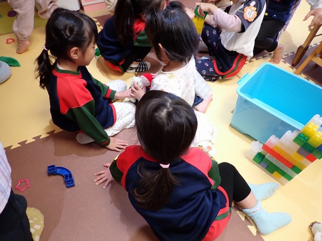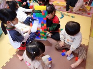 3月23日(月)お部屋遊び(あんず組さん) 2026年3月23日 2歳児のあんず組さんの教室に年中さんが遊びにきてくれました。いっしょにブロックをして楽しんでいました。いろいろな物を作ってもらってみんな喜んでいました。「保護者専用ページ」に子どもたちの様子をアップしました。 前の記事 一覧へもどる
